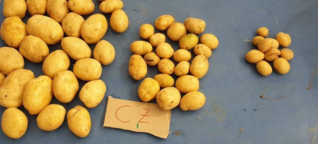 תפוחי אדמה בגודל קטן הם לרוב היבול עליו מקבל החקלאי את התמורה הנמוכה ביותר, ולכן השאיפה היא לקבל כמה שפחות מהם. בתצפית שלהלן ניתן לראות שחלקת הטיפול ב-EM נתנה פחות תפו"א קטנים.